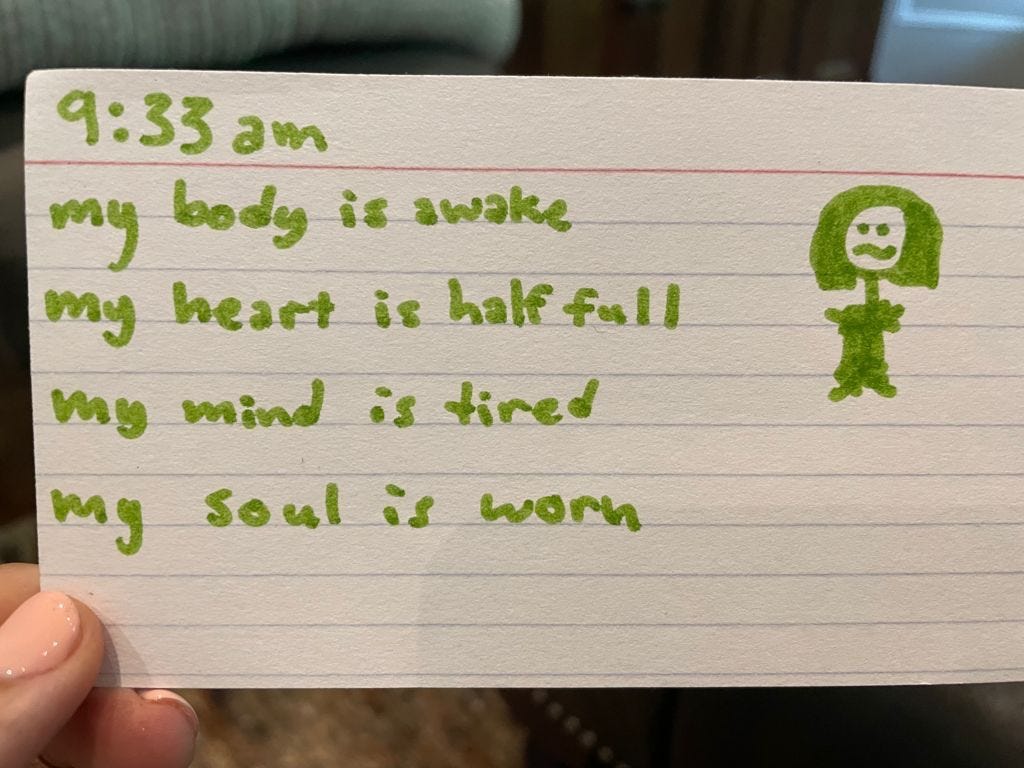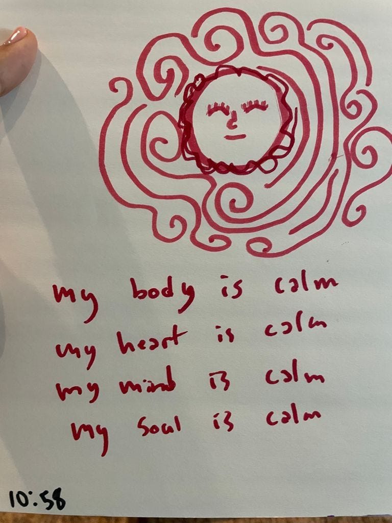 Despite being under 24/7 loving care of her family, Eva’s last attempts (multiple) at self harm were on Thursday. I could not get on a call with Eva that day so I sent a message that I asked her mother to convey to her. She did. Eva agreed to meet me the next day, with the intention to continue into a ceremony the following day if she and I both agreed to it.