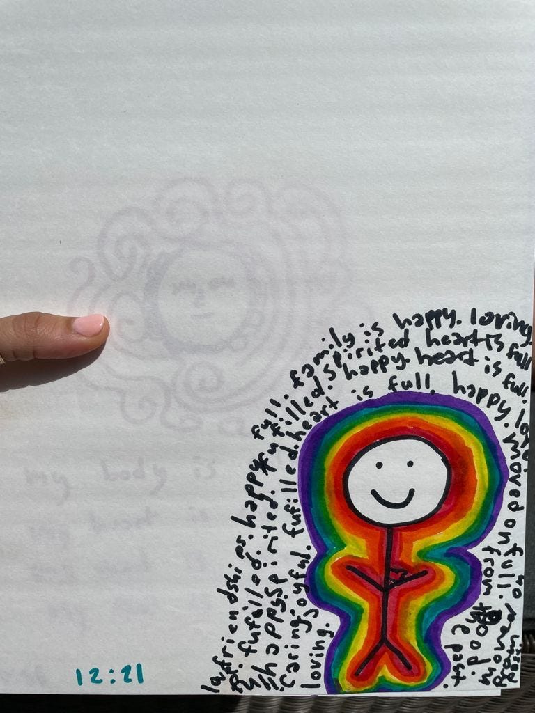 Shortly after this painting I asked Eva how does she feel about her father, whom in the years prior to ceremony she was experiencing immense rage towards and refuse to interact with. Eva paused and said: “I love him, I forgive him. He’s good people.” I asked her if she minded if we wrote him or send him an audio message. She suggested we video call him, which we did. Eva said: “Hey dad I love you, I’m sorry..” Her dad who hasn’t as much as heard his daughter refer to him as “Dad” for years, let alone declare her love towards him, cried like I never heard grown man cry before or since.